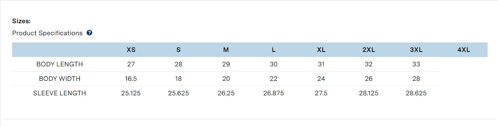 Sizes